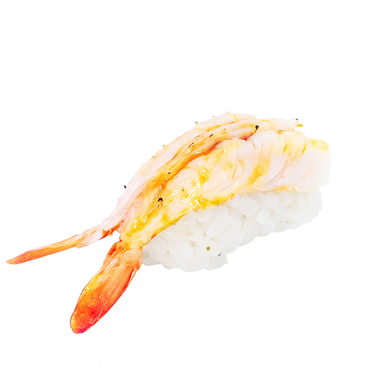 Relleno de queso cremoso, cebolla confitada, langostino furai, envuelto en laminas de salmón, salsa sriracha y teriyaki (8u.)